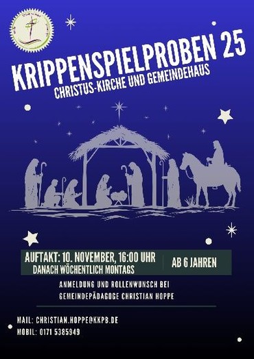 Da es für die Probewoche in den Herbstferien nicht genug Anmeldungen gab, proben wir ab November wöchentlich im Gemeindehaus der Christus-Kirche das Krippenspiel.