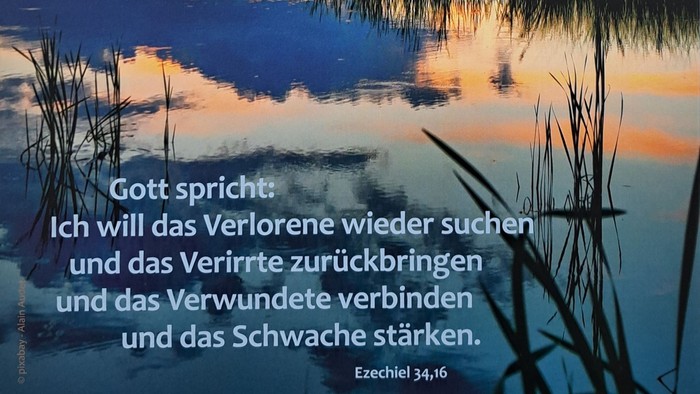 Gott spricht: Ich will das Verlorene wieder suchen und das Verirrte zurückbringen und das Verwundete verbinden und das Schwache stärken. (Ezechiel 34,16)